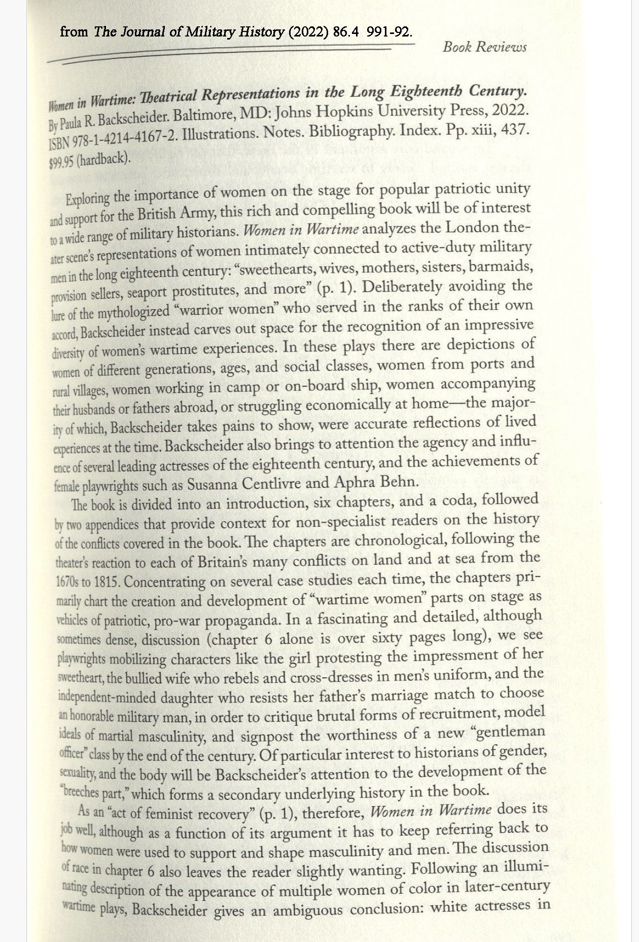 Reviews of Women in Wartime This section contains a selection of reviews for Women in Wartime. Review by Ashley Bender, from The Year’s Work in English Studies. Oxford University Press (2023) Review by Meghan Kobza, for Gender and History, (July 2023): 35.2: 759-760. Theater survey by Chelsea Phillips, published by Cambridge University Press on behalf of the American Society for Theatre Research, Inc (2022) Theater review by Matilda Greig, from the Journal of Military History 86, no. 4 (October 2022): 991–92.